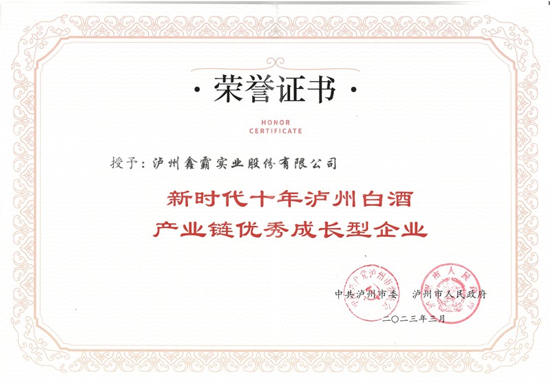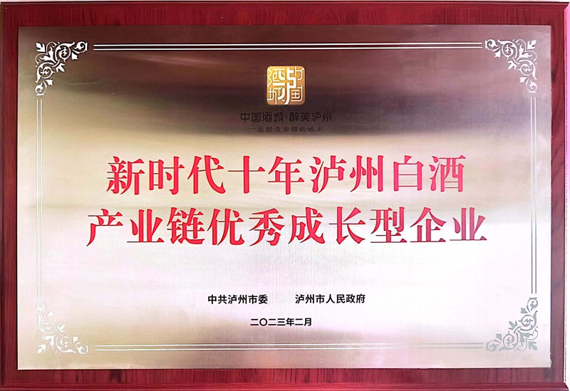 鑫霸實(shí)業(yè)榮獲“新時(shí)代十年瀘州白酒產(chǎn)業(yè)鏈優(yōu)秀成長(zhǎng)型企業(yè)”
